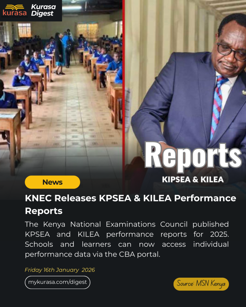 The Kenya National Examinations Council has released the 2025 KPSEA and KILEA performance reports, providing schools and learners with detailed competency-based assessment outcomes. The reports allow access to individual learner performance through the CBA portal, supporting placement, transition planning, and targeted learner support under the CBC system.