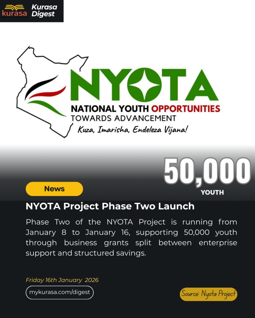 Phase Two of the NYOTA Project is currently underway, expanding youth enterprise support across the country. The programme targets young people outside formal education pathways, offering business grants, entrepreneurship training, mentorship, and structured savings support.