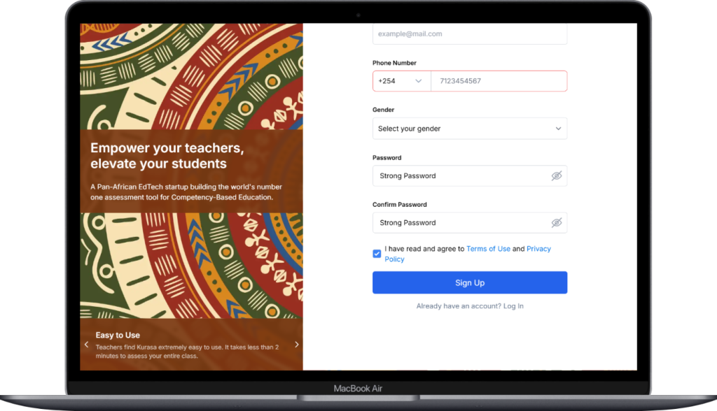 - Check the box to agree to Kurasa’s Terms of Use and Privacy Policy