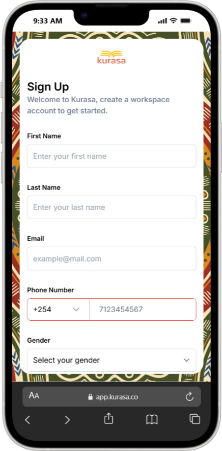 This guide walks you through how to sign up for a Kurasa account, verify your details, and resolve common signup issues. It applies to both desktop (PC) and mobile users.
